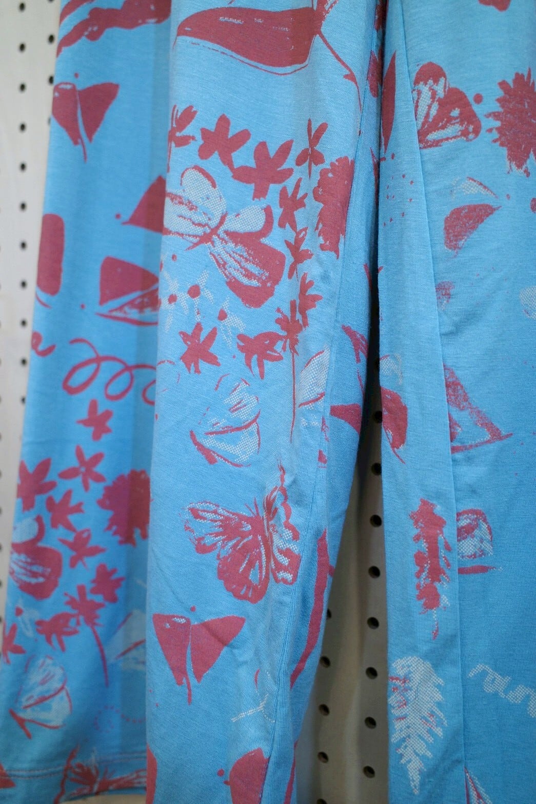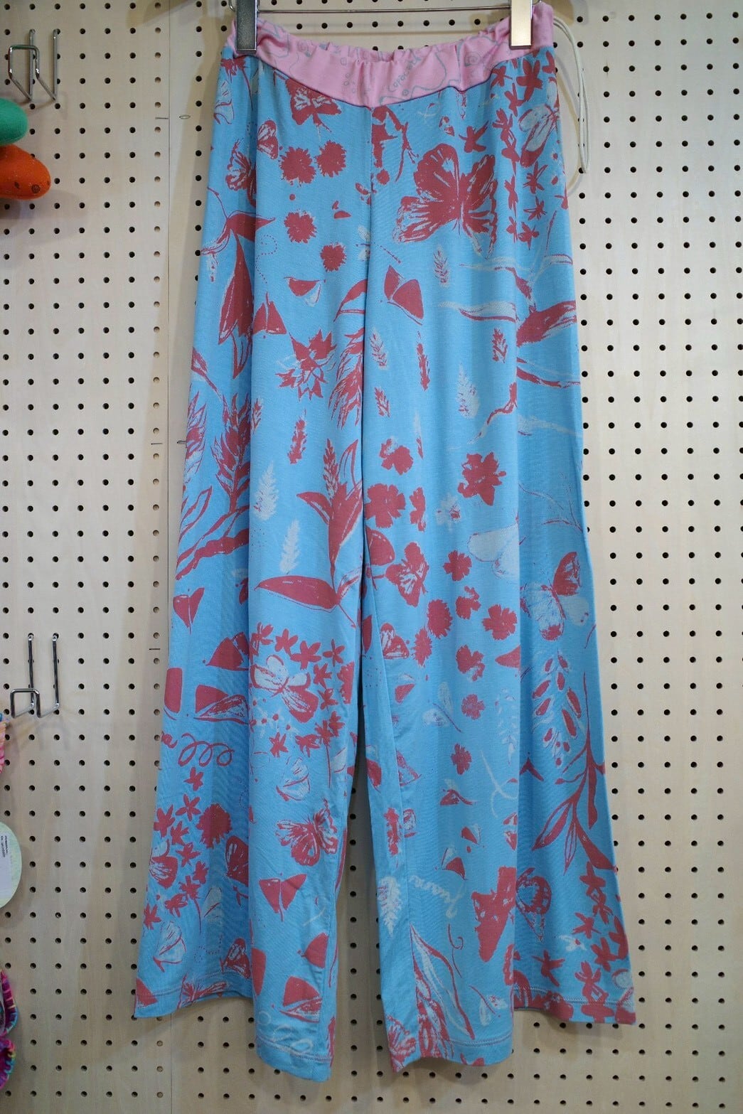 ワイドパンツ(ライトブルー/お花とちょうちょ柄)