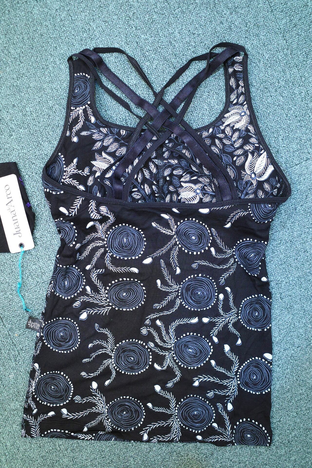 Mi negra バッククロスタンクトップ(ブラック/インドの小花柄)