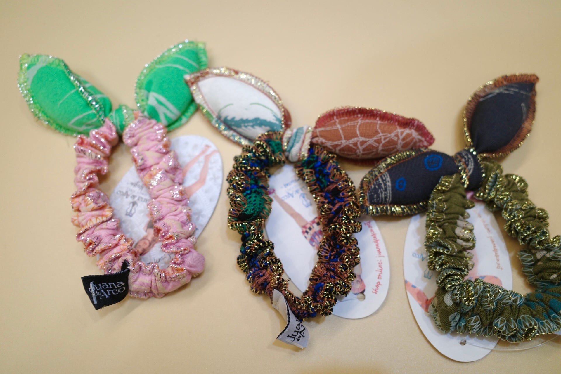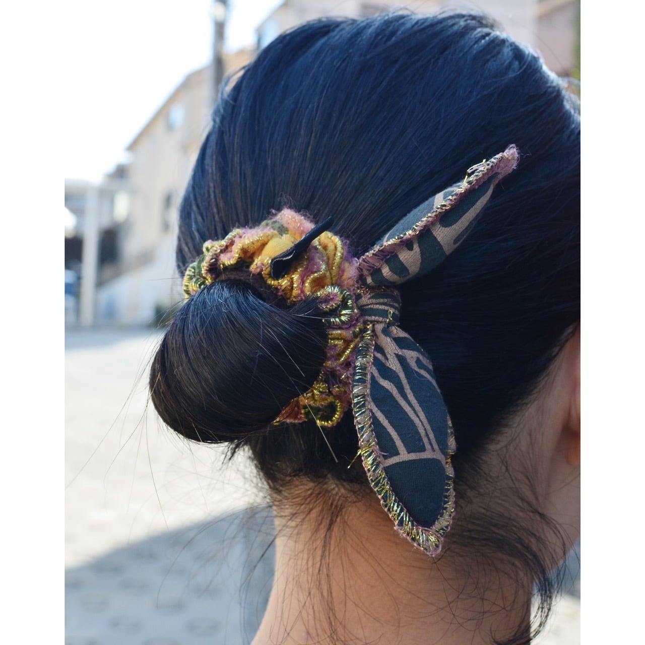 さっと髪をまとめるのに便利なリボンシュシュ。