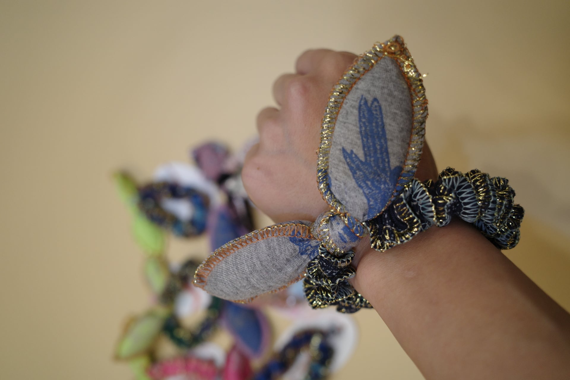 さっと髪をまとめるのに便利なリボンシュシュ。