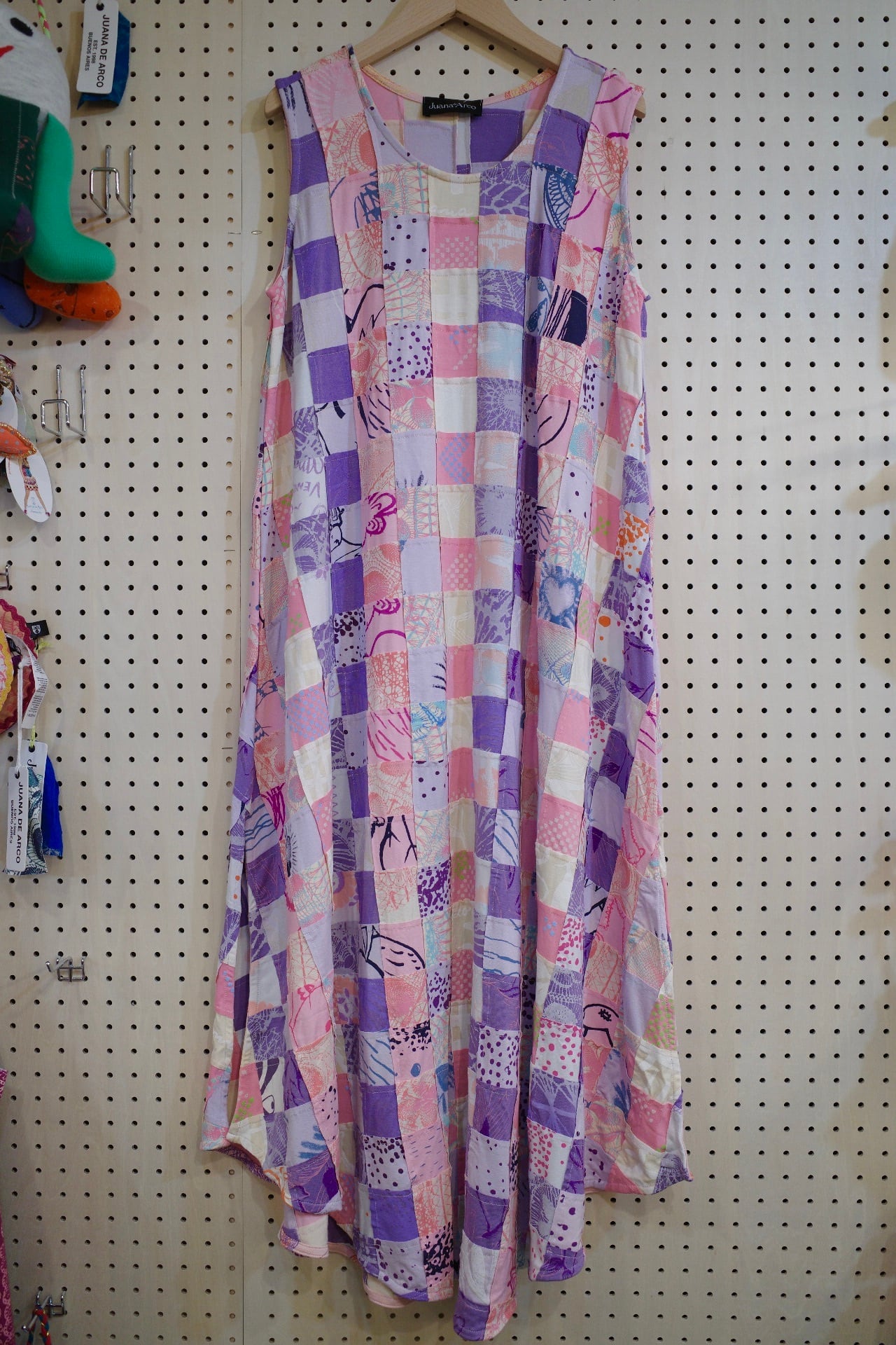 襟ぐりはつまっていて、裾はビルヘンワンピースのように真ん中が長いデザイン。