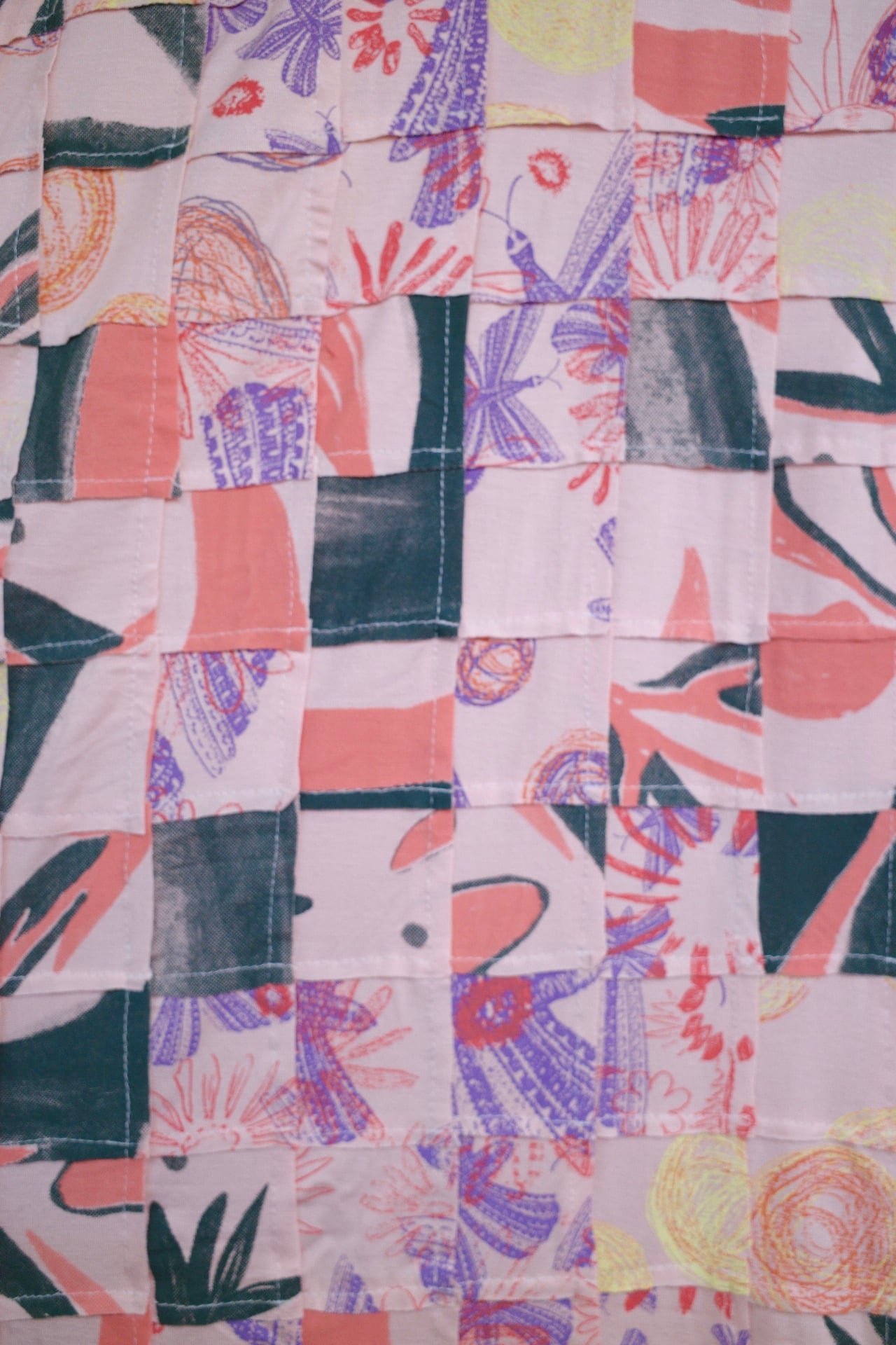 とーっても久しぶりに入荷したFELIZは職人さん気合いの約5㎝四方のハギレをつないだ細かめパッチワーク!