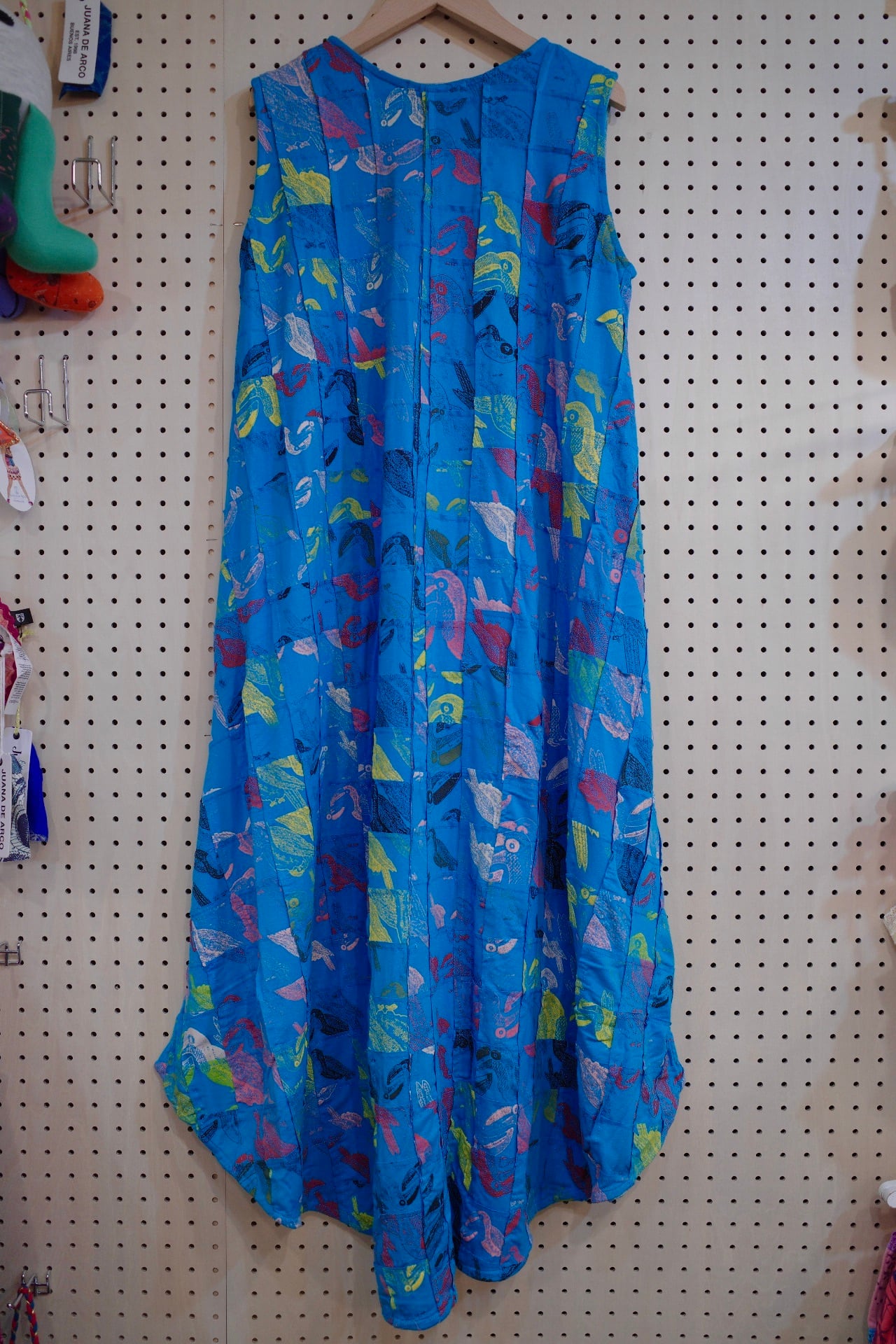 襟ぐりはつまっていて、裾はビルヘンワンピースのように真ん中が長いデザイン。