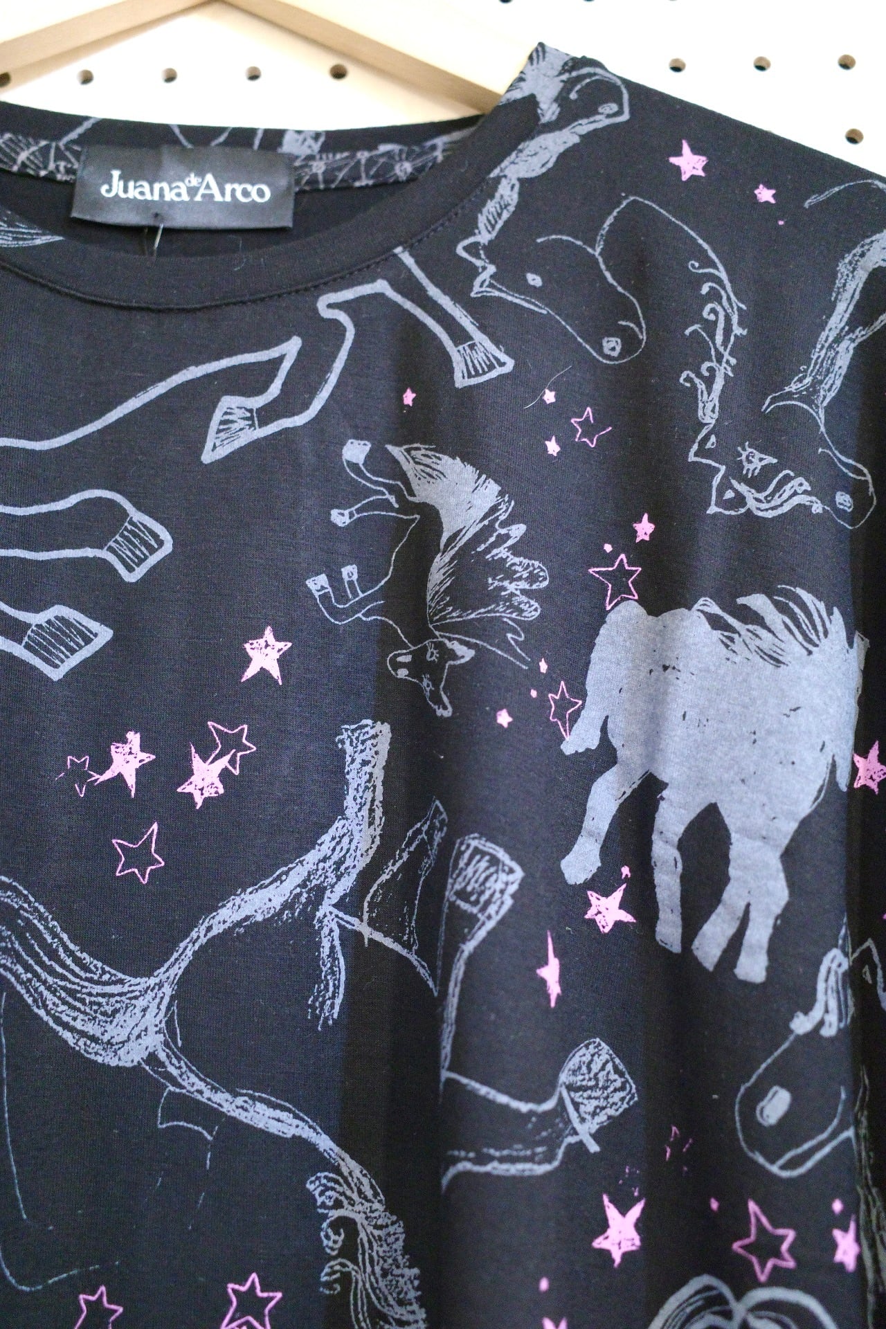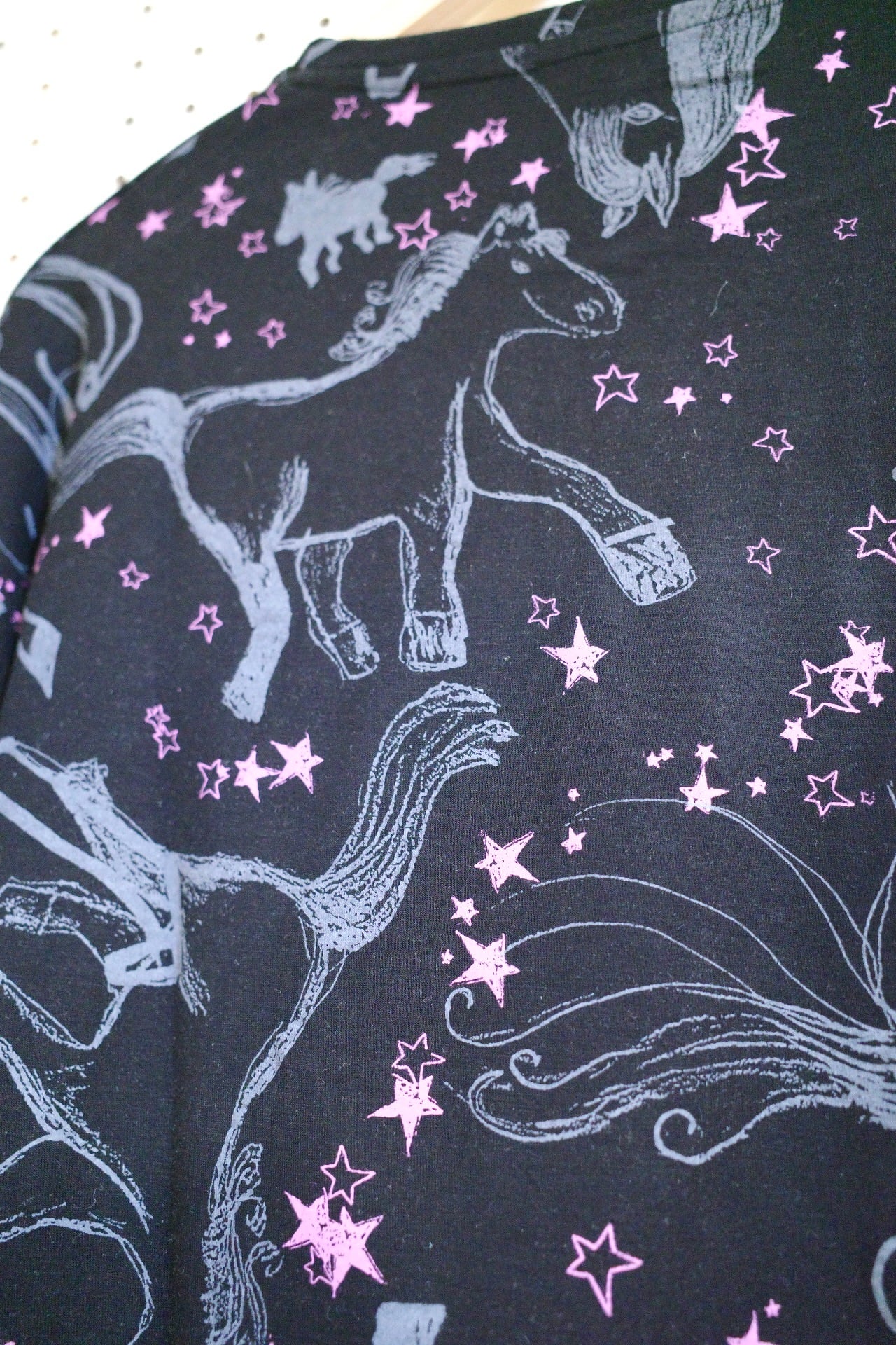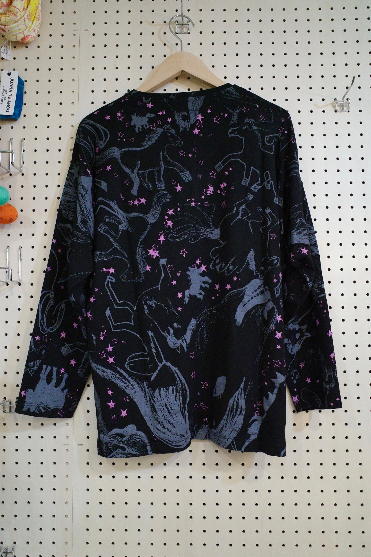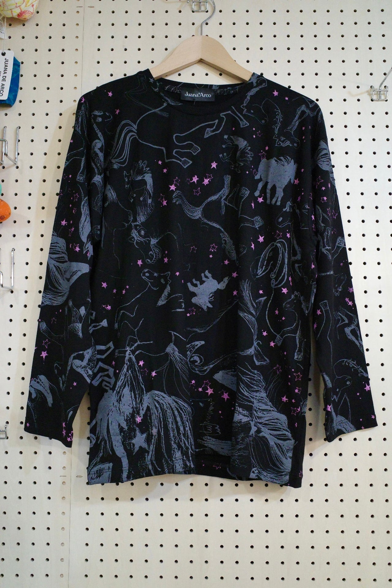 ゆったりロングスリーブトップス(ブラック/馬柄)