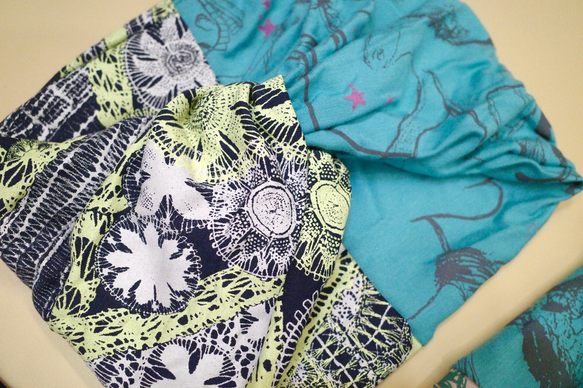 モダール生地は水濡れすると重たくなるので、