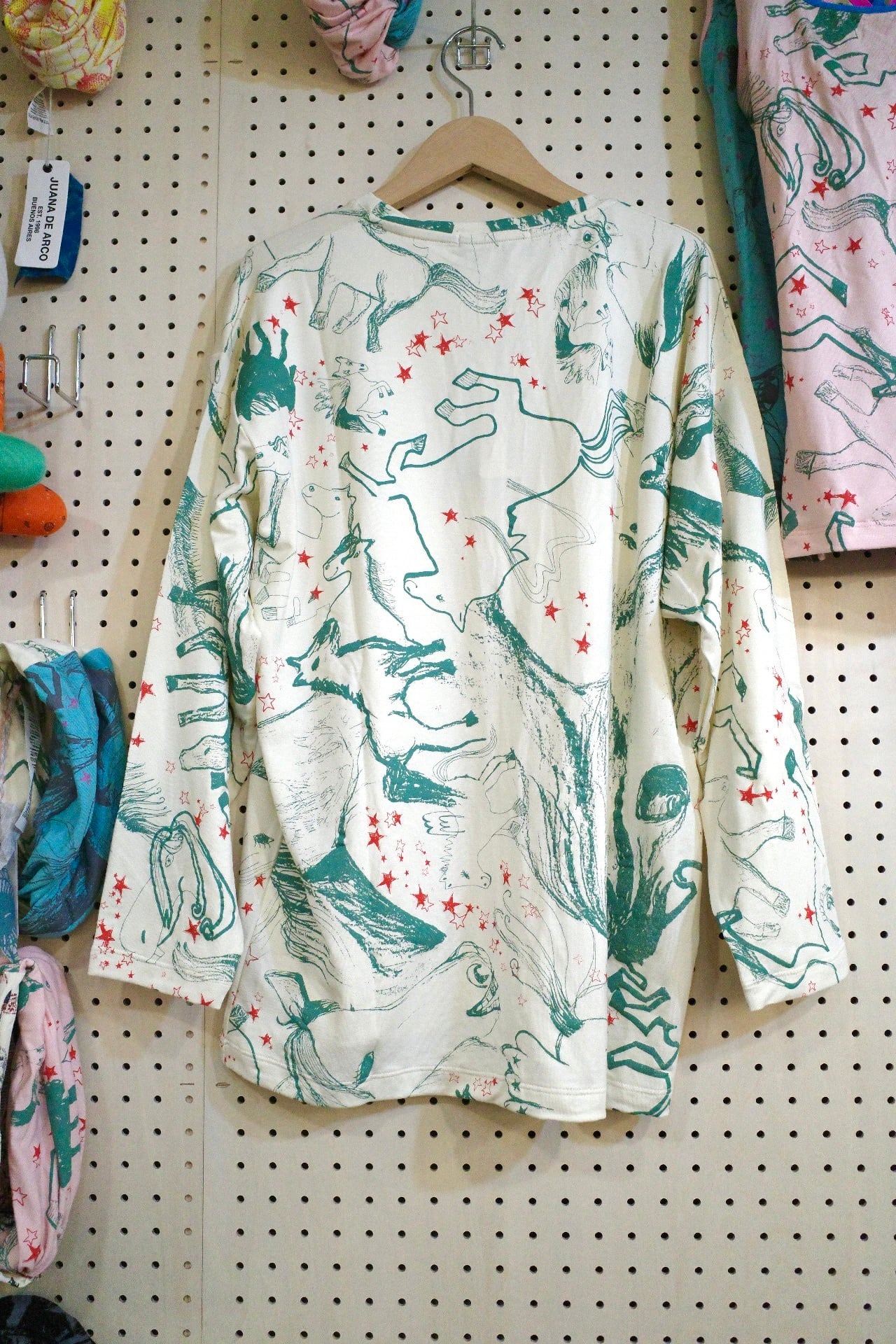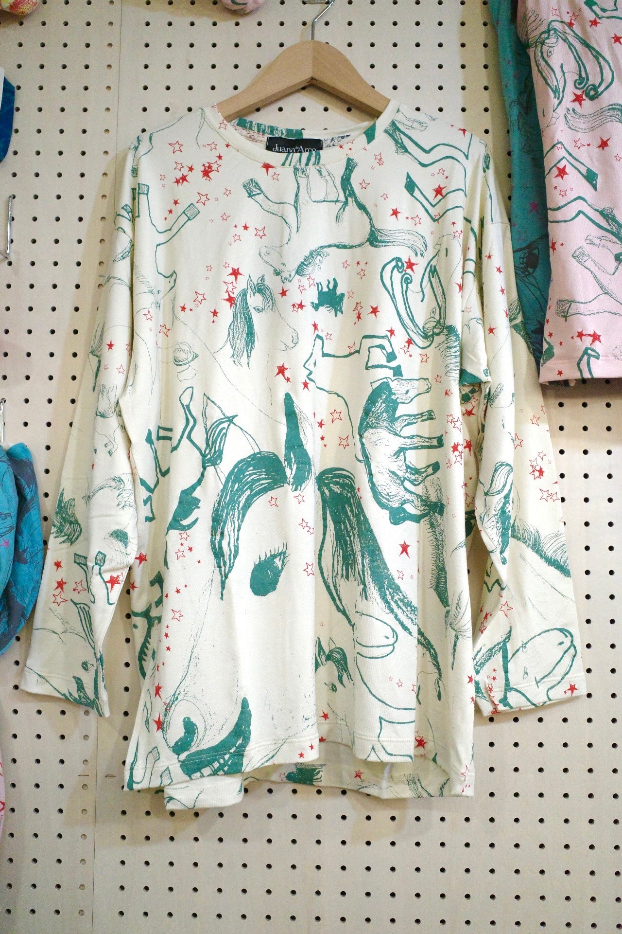 ゆったりロングスリーブトップス(アイボリー/馬柄)