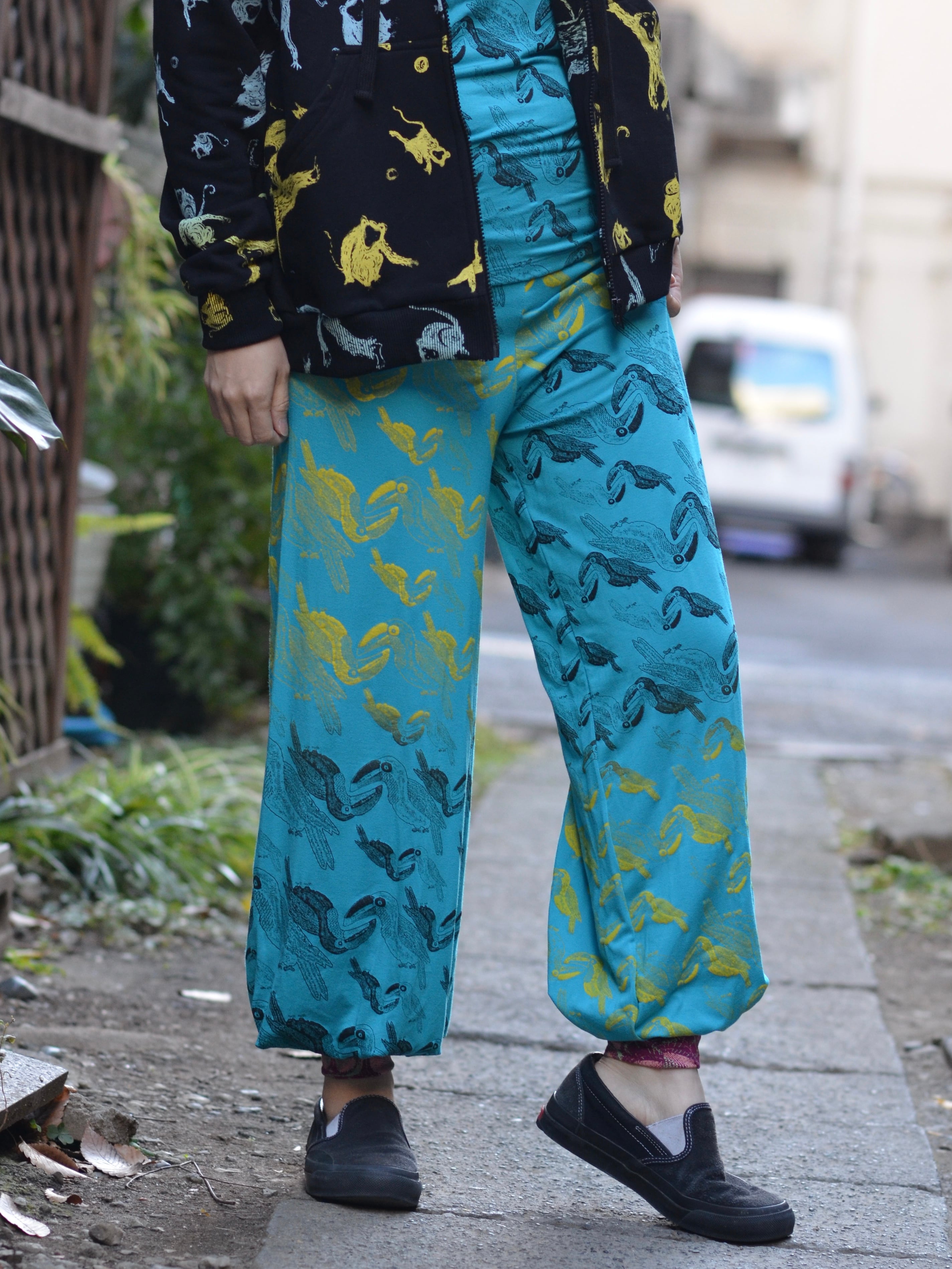その名の通り裾できゅっとすぼまったアラジンスタイルの個性的なパンツです。