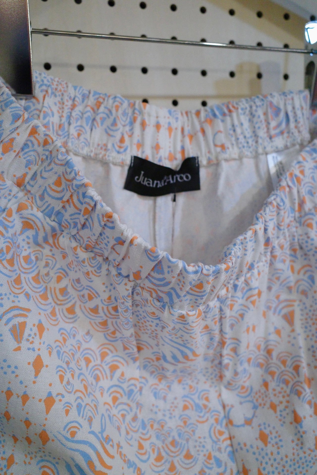 Juana de Arcoらしいテキスタイルが全面に広がり、シンプルなトップスと合わせるだけでコーディネートの主役になる一枚です。