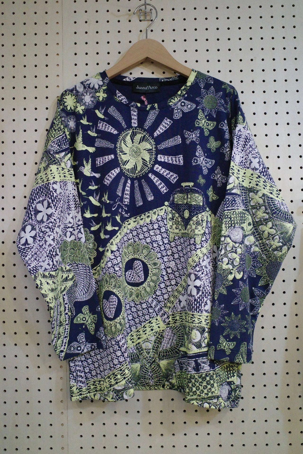 ゆったりロングスリーブトップス(ネイビー/ニャンドゥティの風景柄)