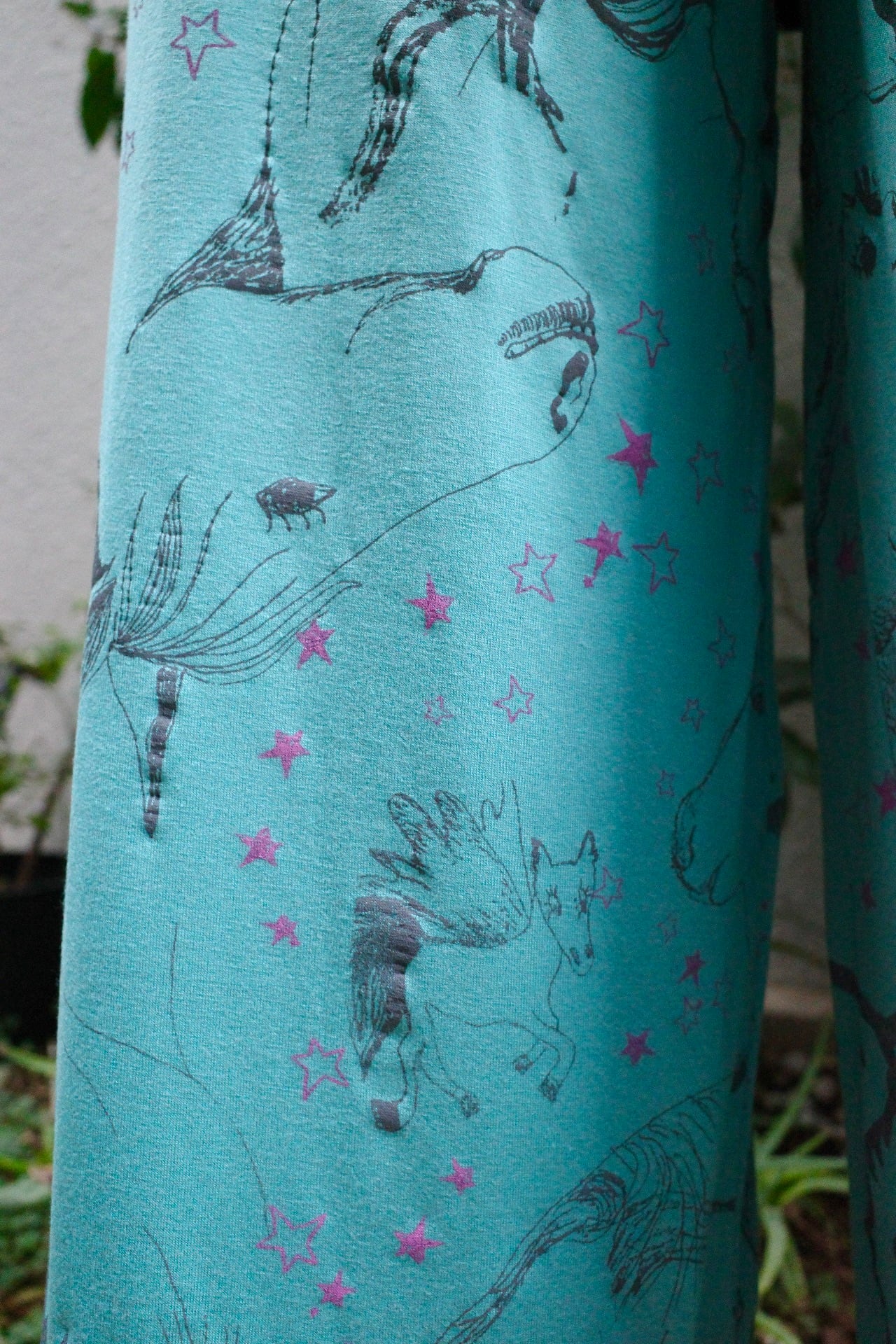 そのままハンギングして干すとだんだん生地が伸びてきます。