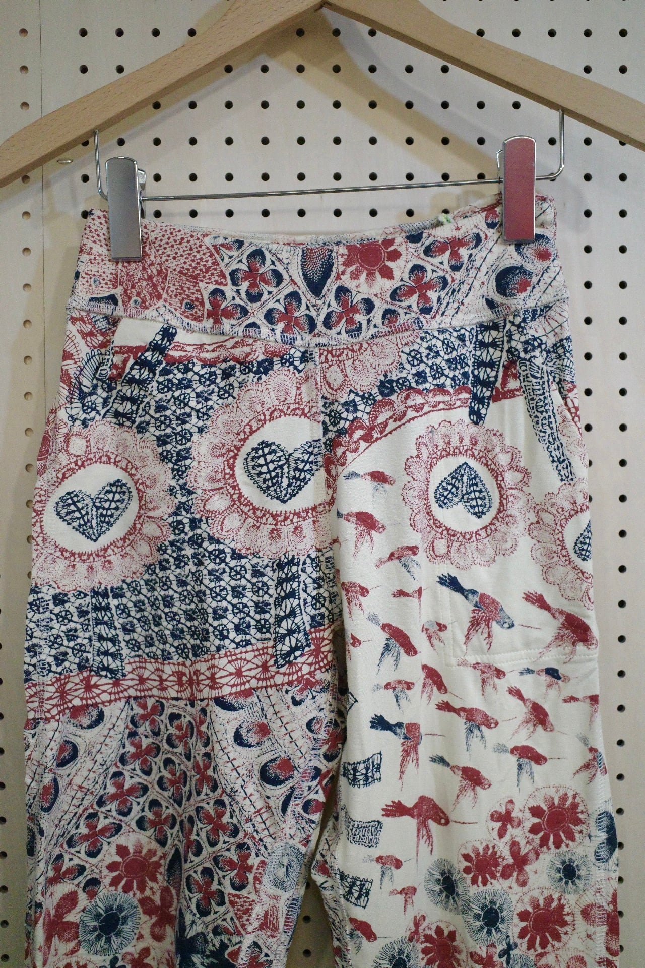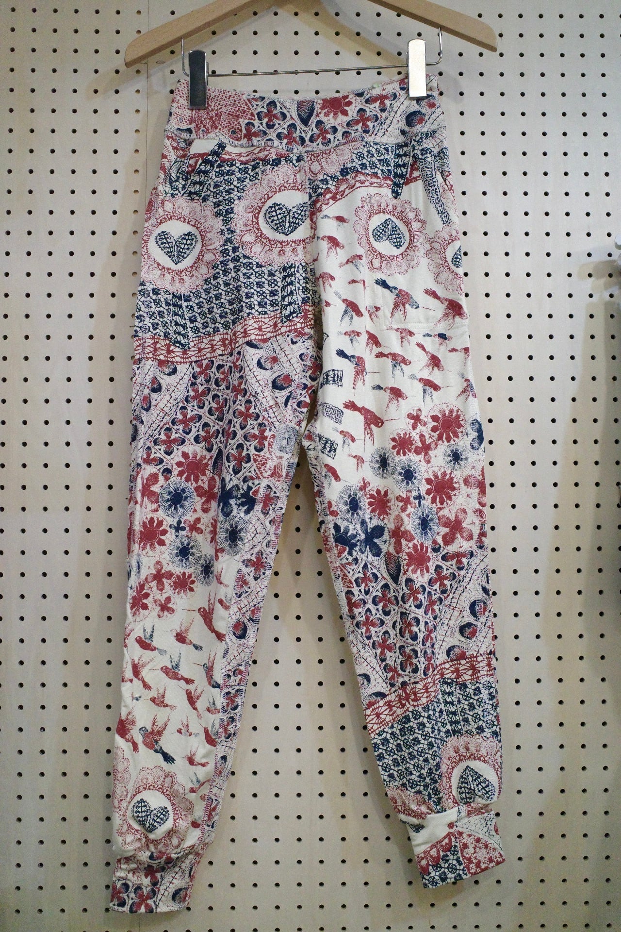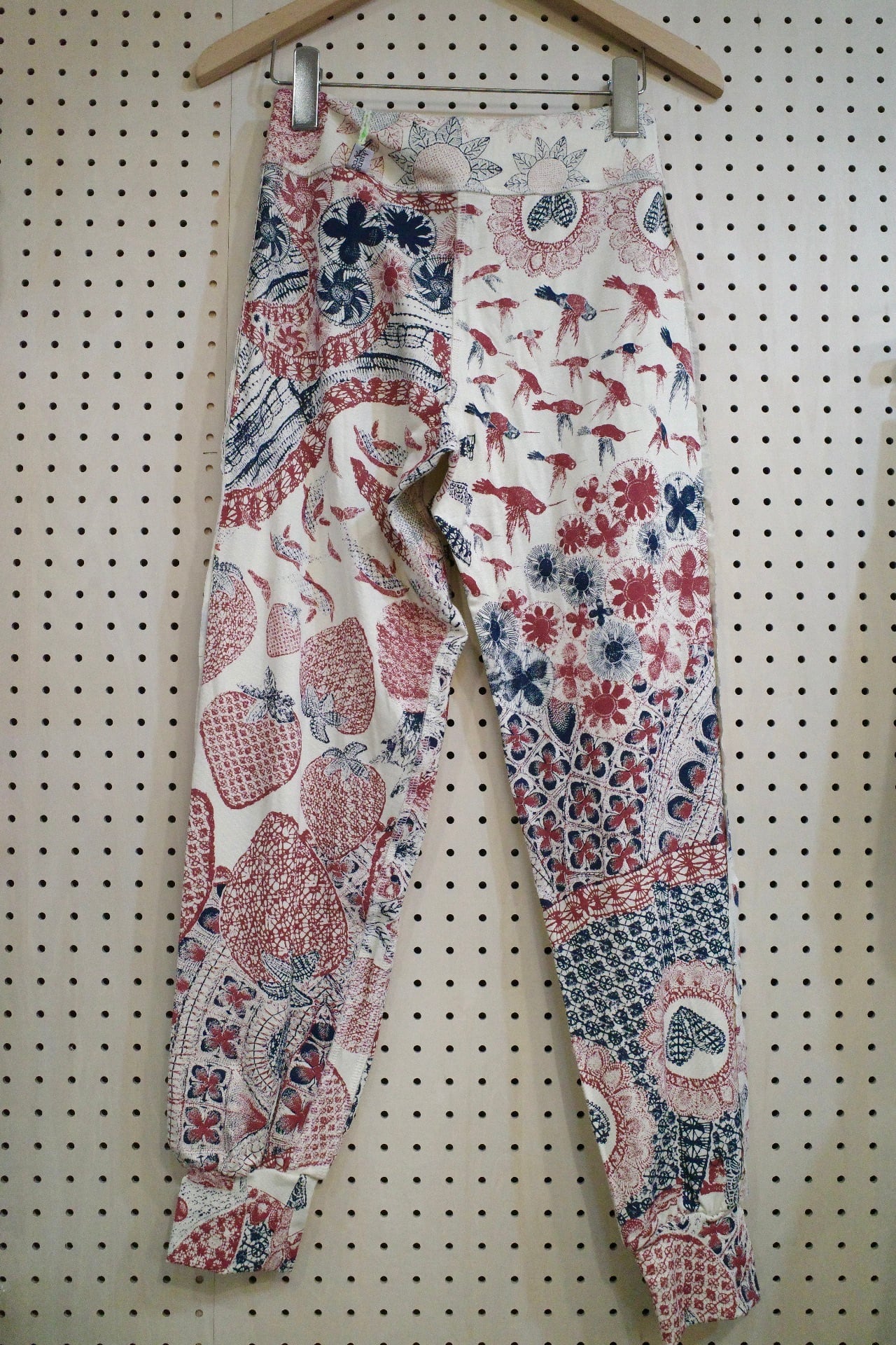 ポケット付きアラジンパンツ(アイボリー/ニャンドゥティの風景柄) Sサイズ