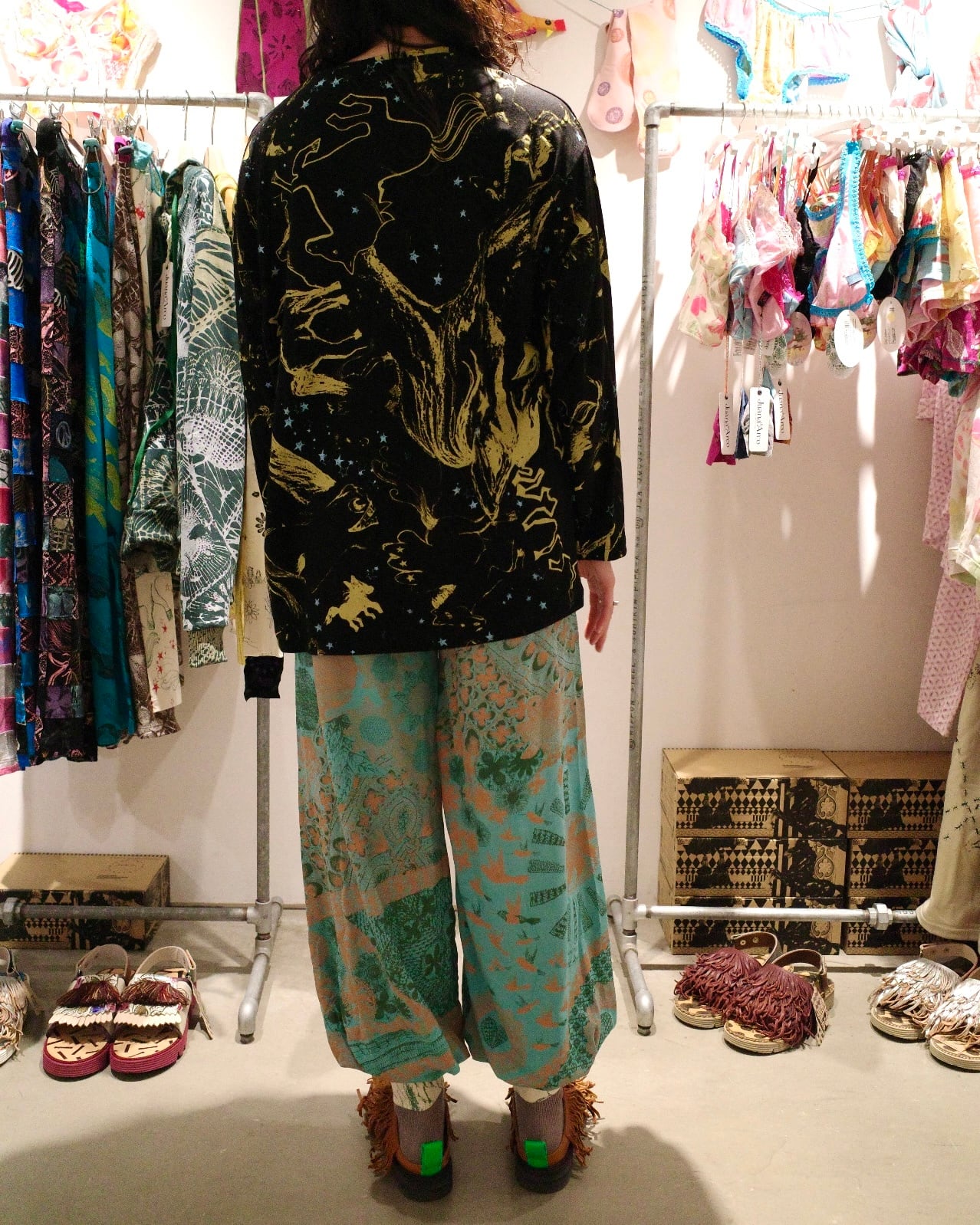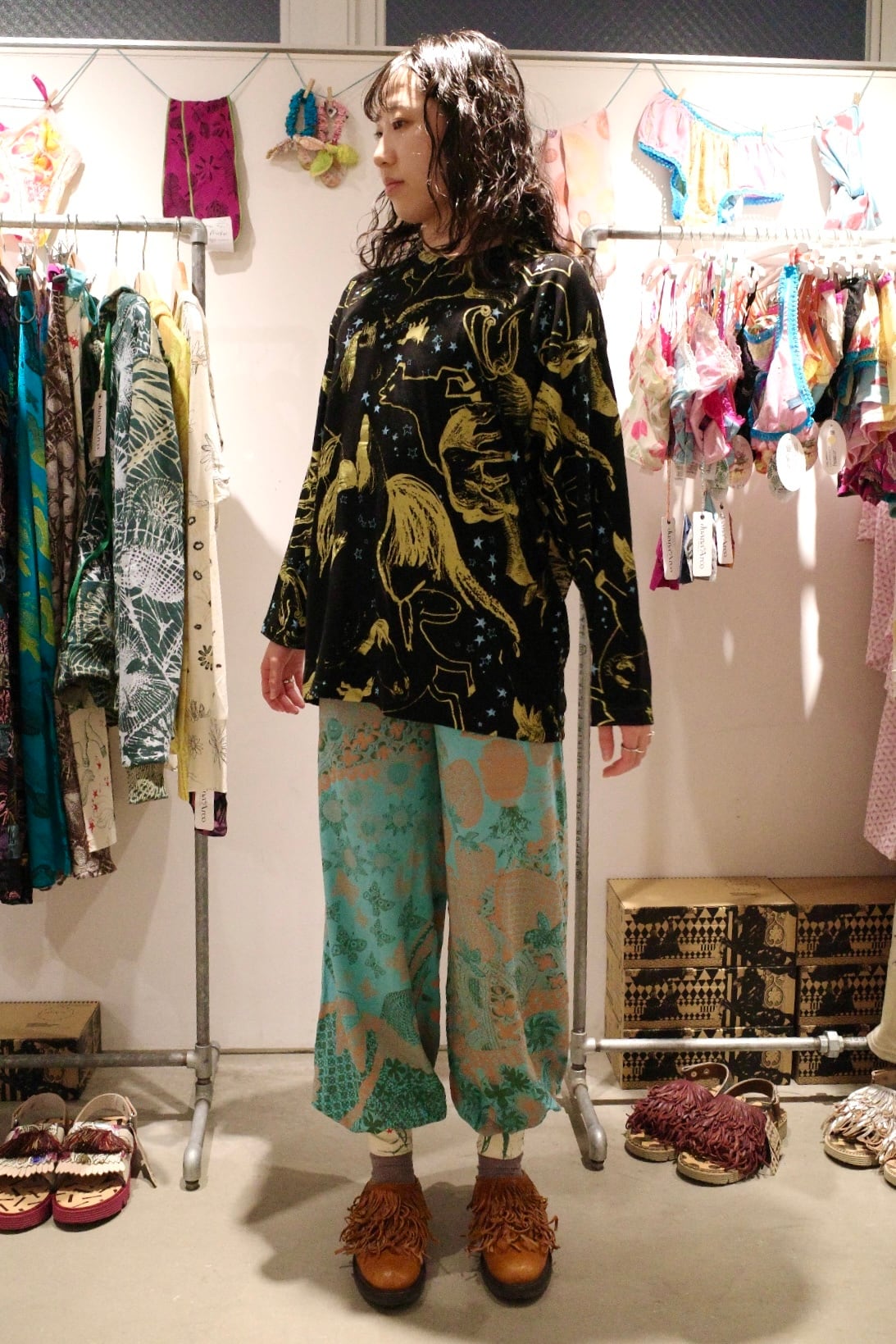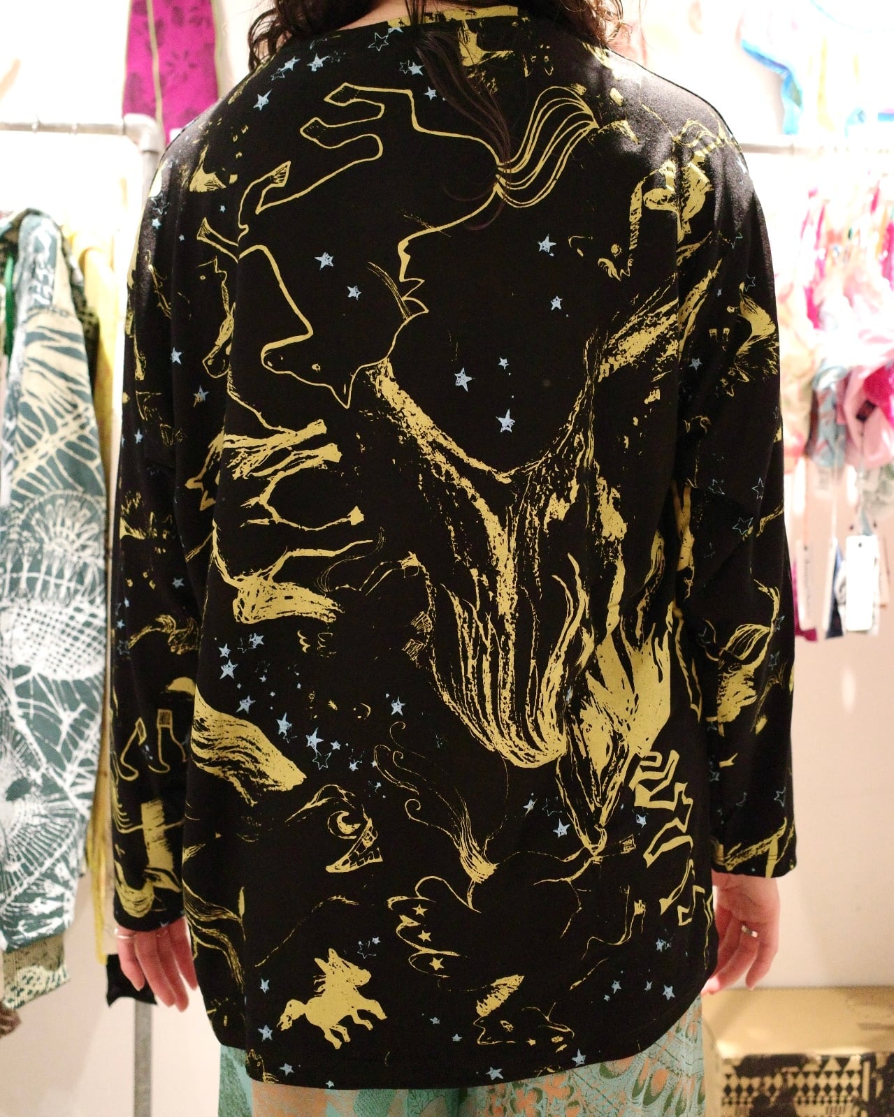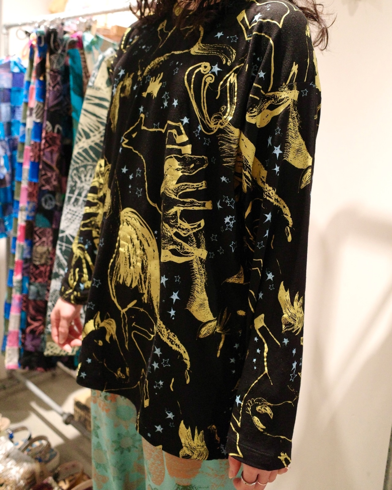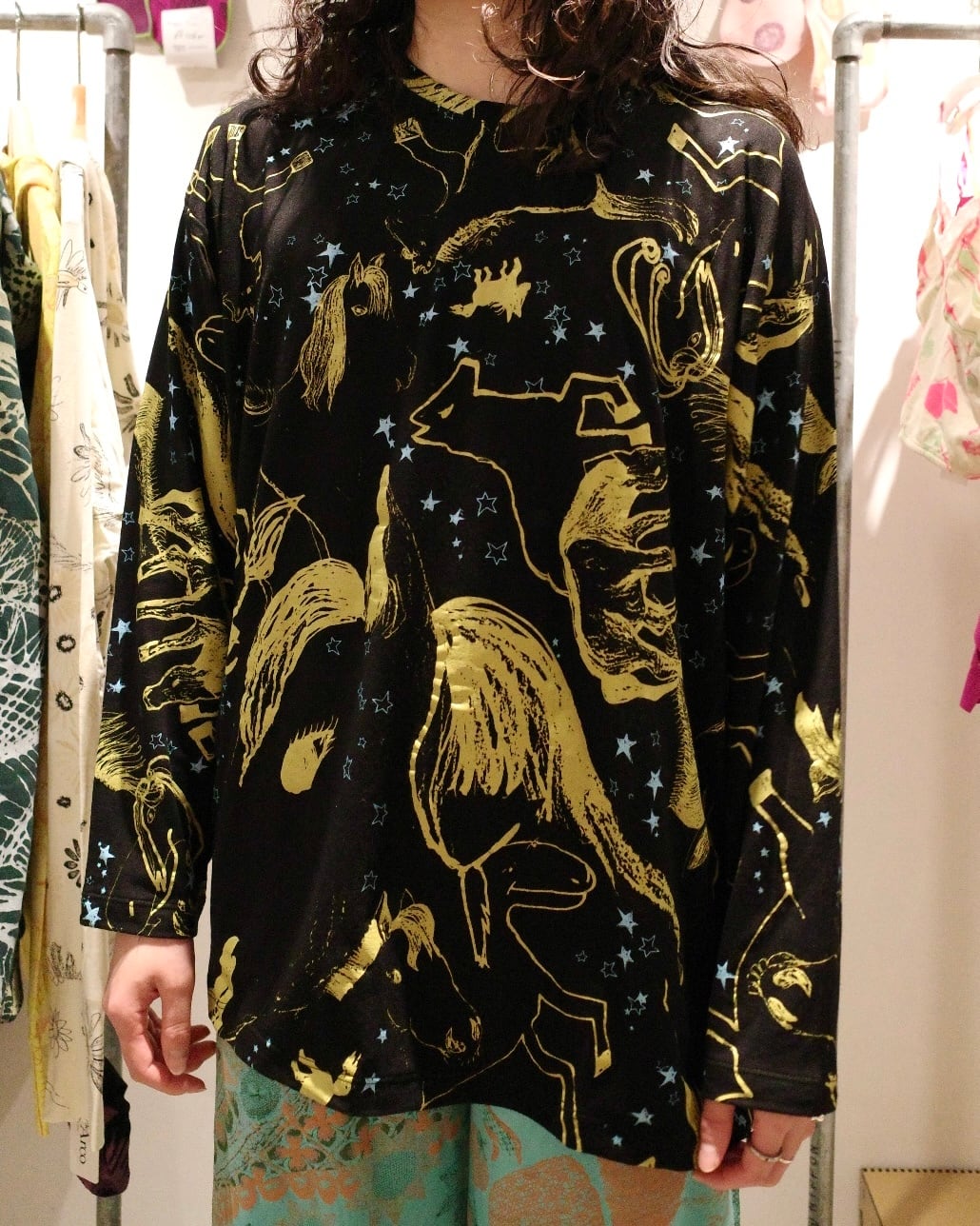 ゆったりロングスリーブトップス(ブラック/馬柄)
