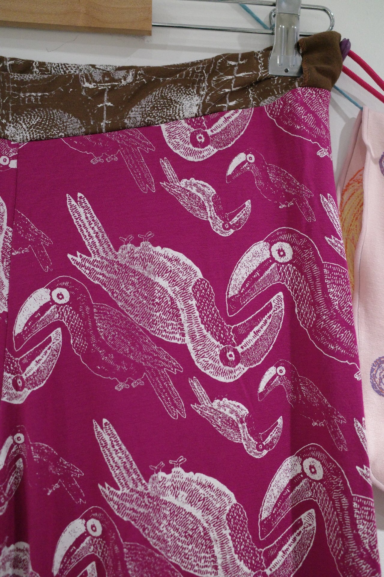 そのままハンギングして干すとだんだん生地が伸びてきます。