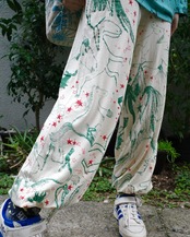 アラジンパンツ Mサイズ (スモーキーブルー/ニャンドゥティの風景柄)