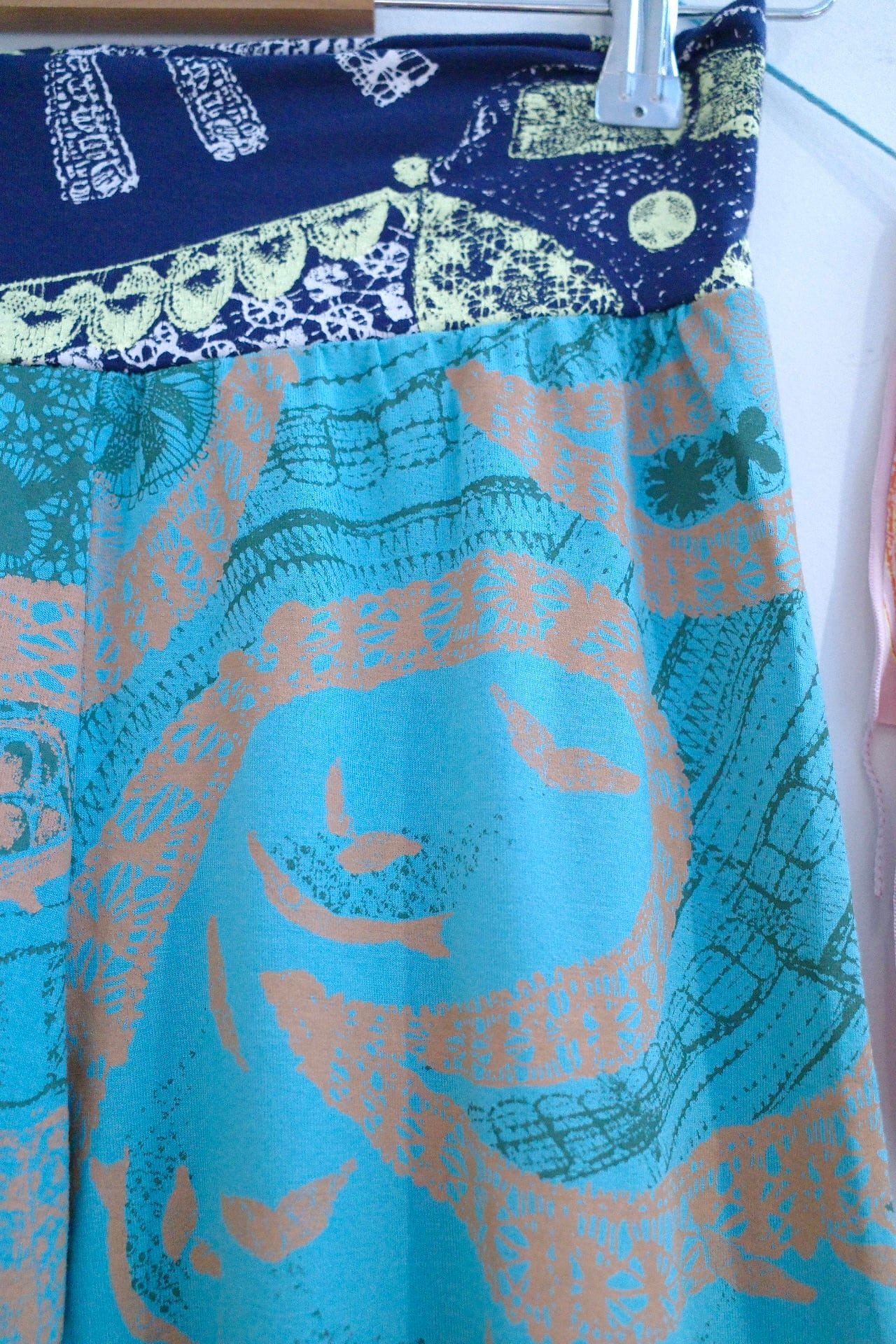 そのままハンギングして干すとだんだん生地が伸びてきます。