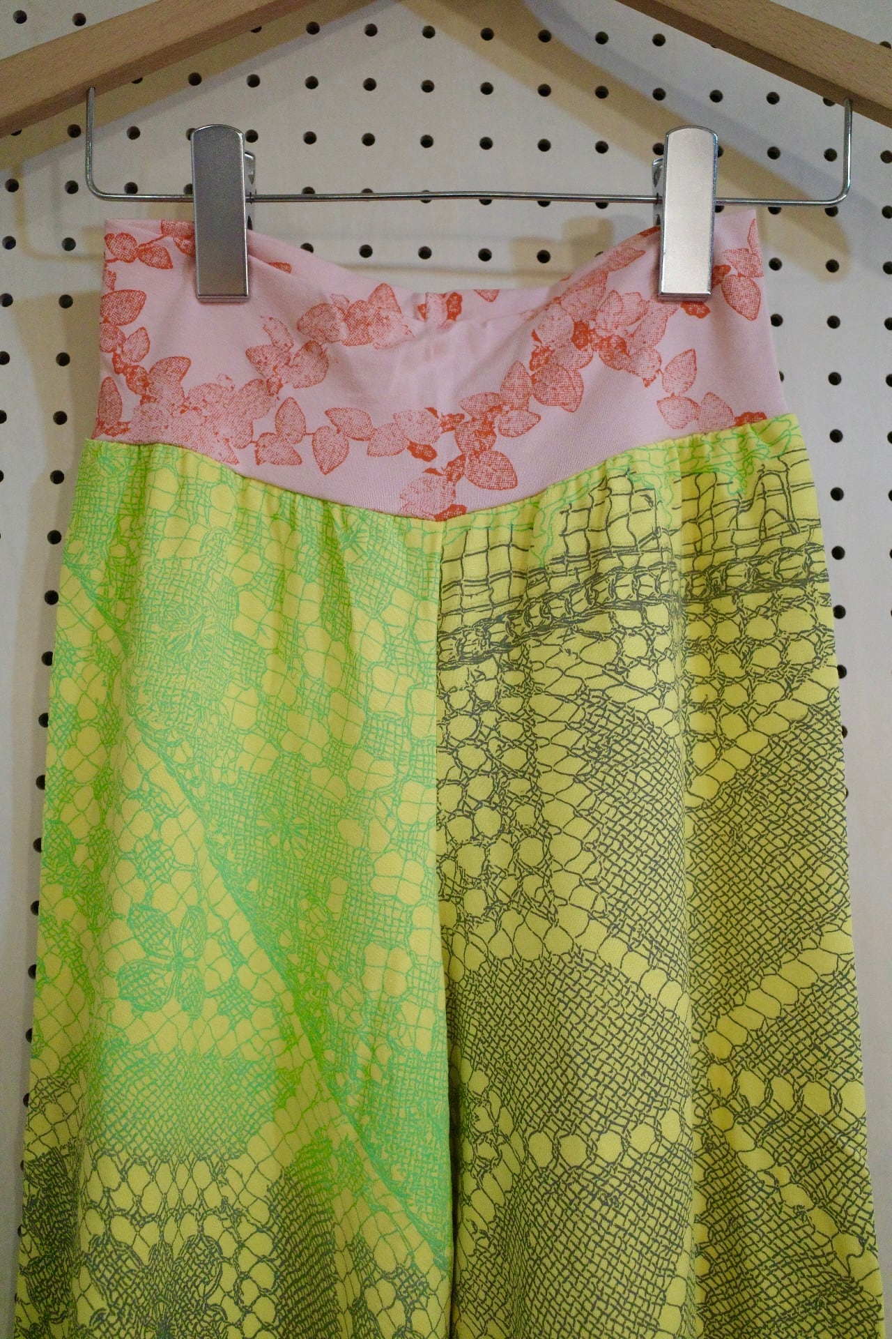ウエストはゴムが入っておらず伸びてお腹に沿うデザインです。