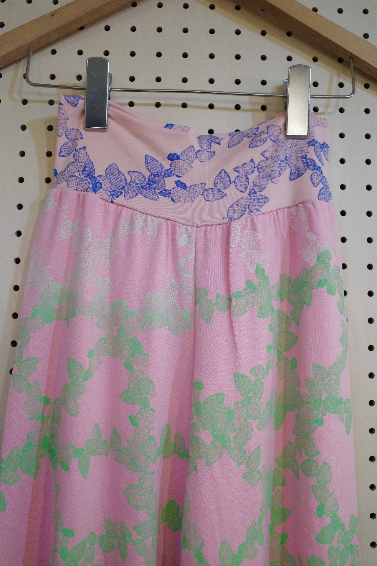 ウエストはゴムが入っておらず伸びてお腹に沿うデザインです。