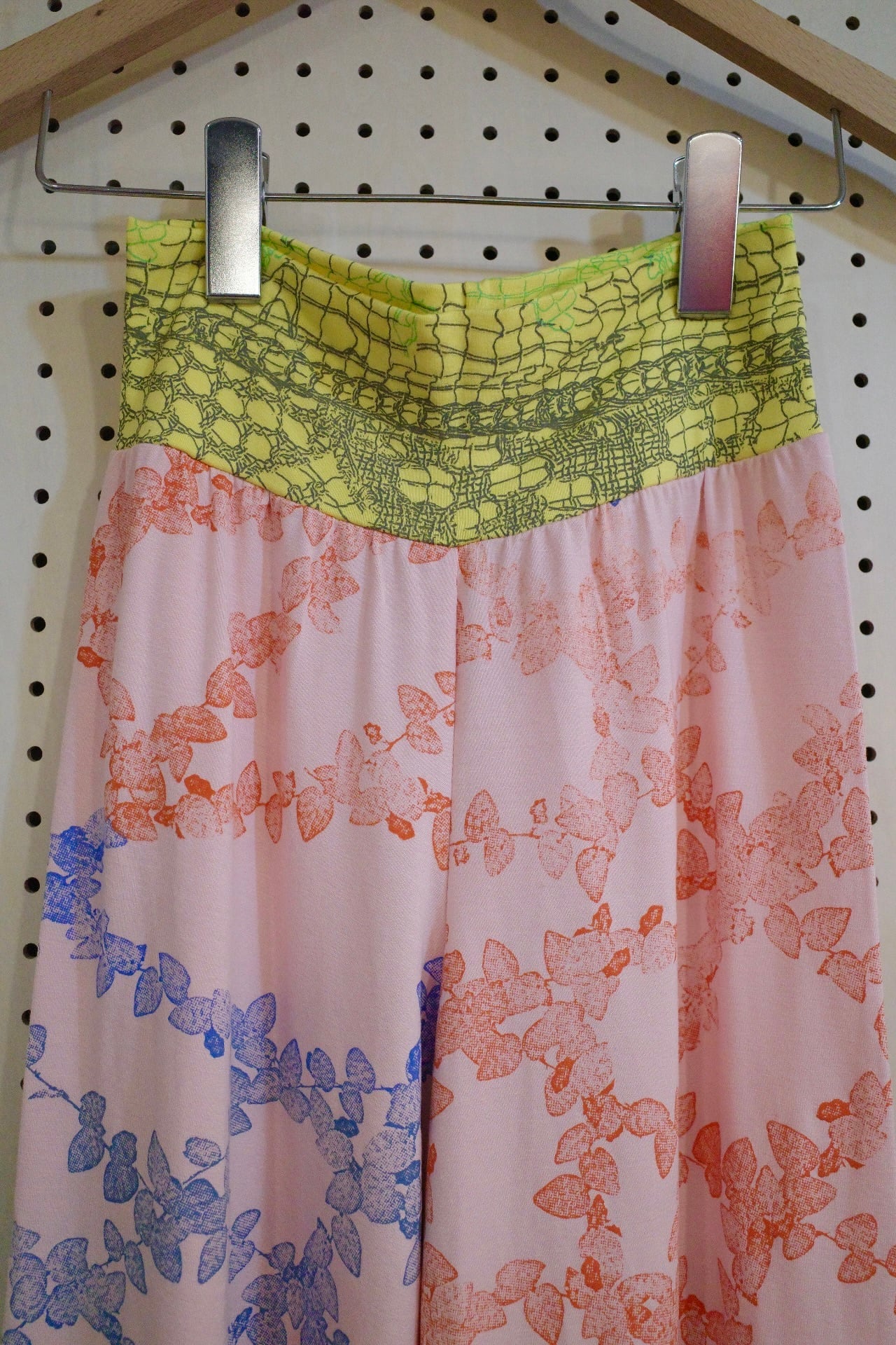 ウエストはゴムが入っておらず伸びてお腹に沿うデザインです。