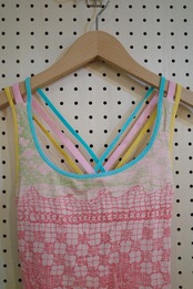 バッククロスタンクトップ(ペールピンク/レース柄)