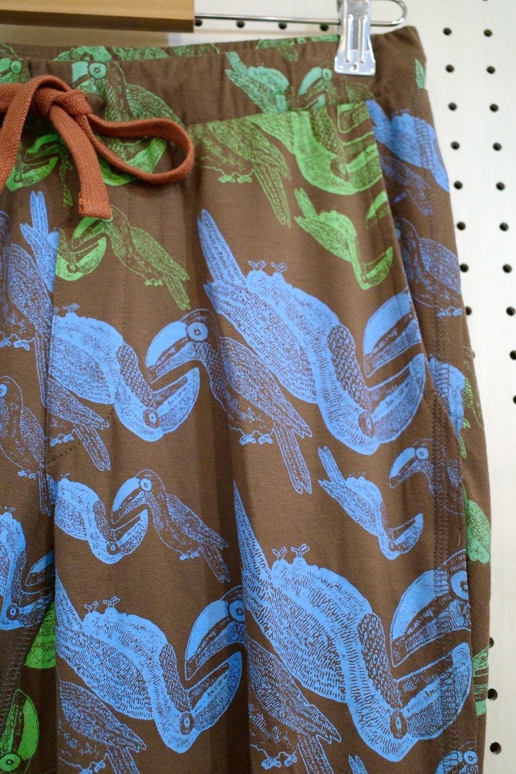 ユニセックスジョギングパンツ Sサイズ (ブラウン/トゥカン柄)