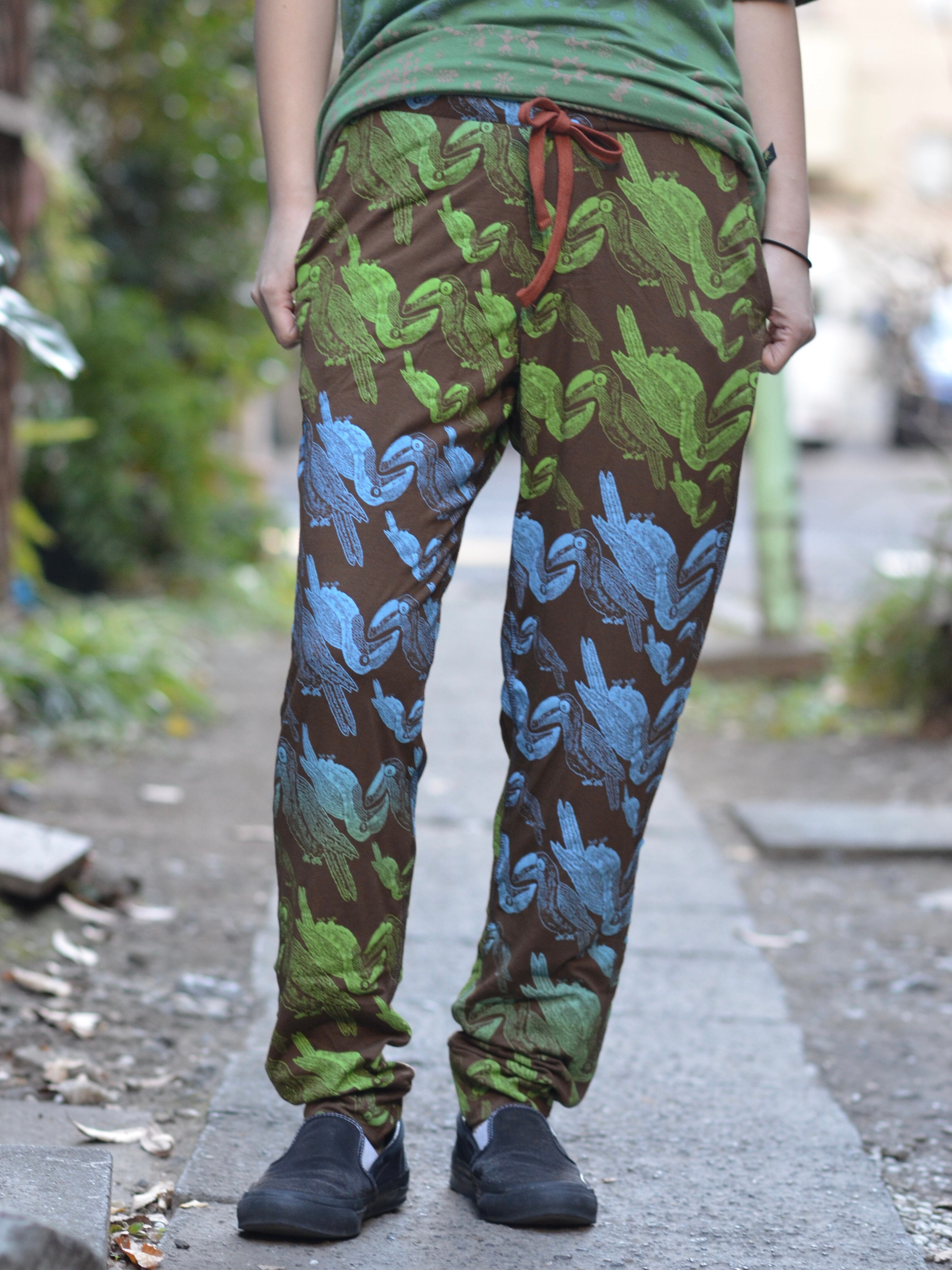 ユニセックスジョギングパンツ Sサイズ (ターコイズブルー/トゥカン柄)