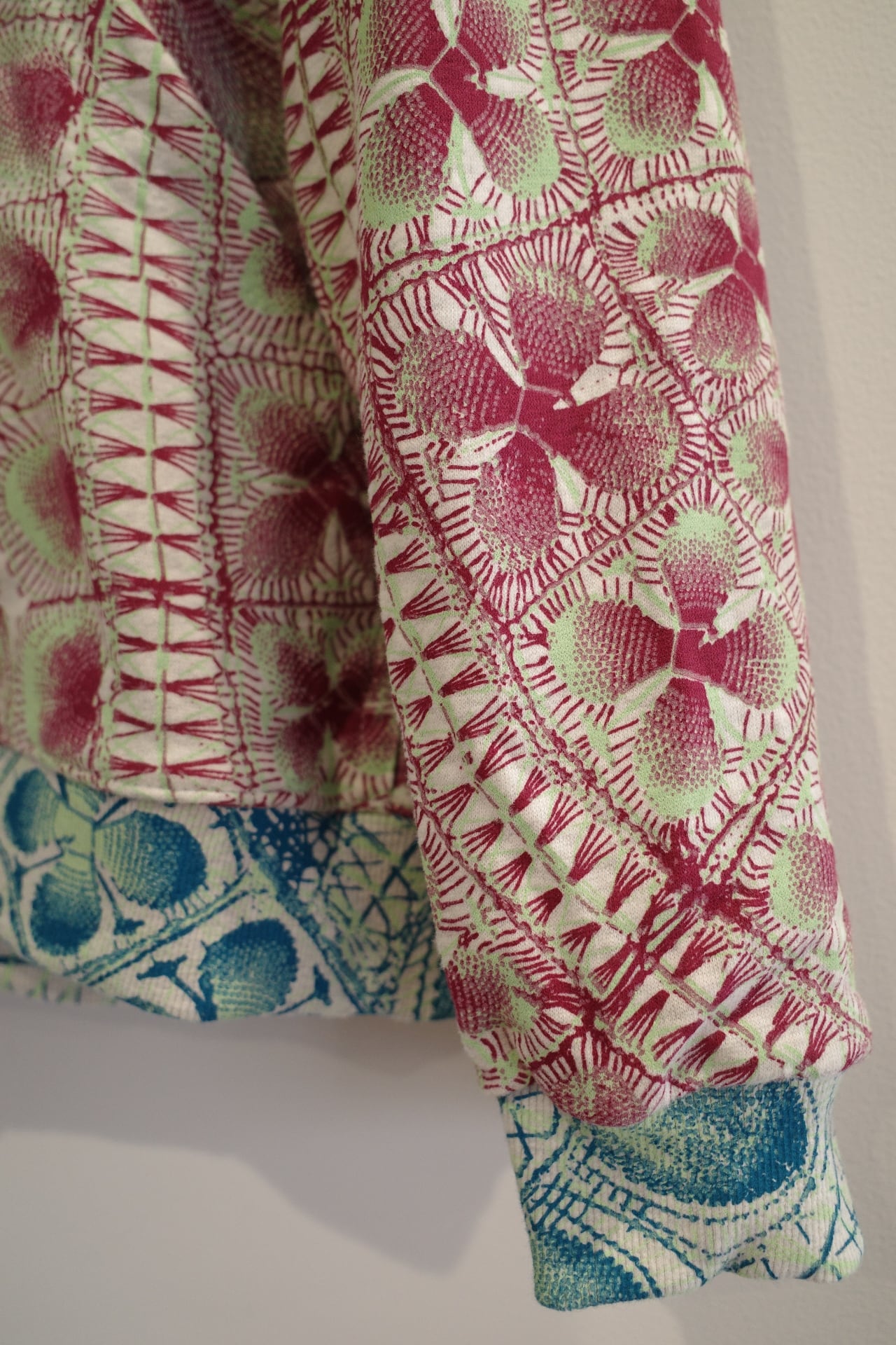 リブまで柄がプリントされており、ファスナーの上部にはチンガード、深いポケットとこだわりデザインです。