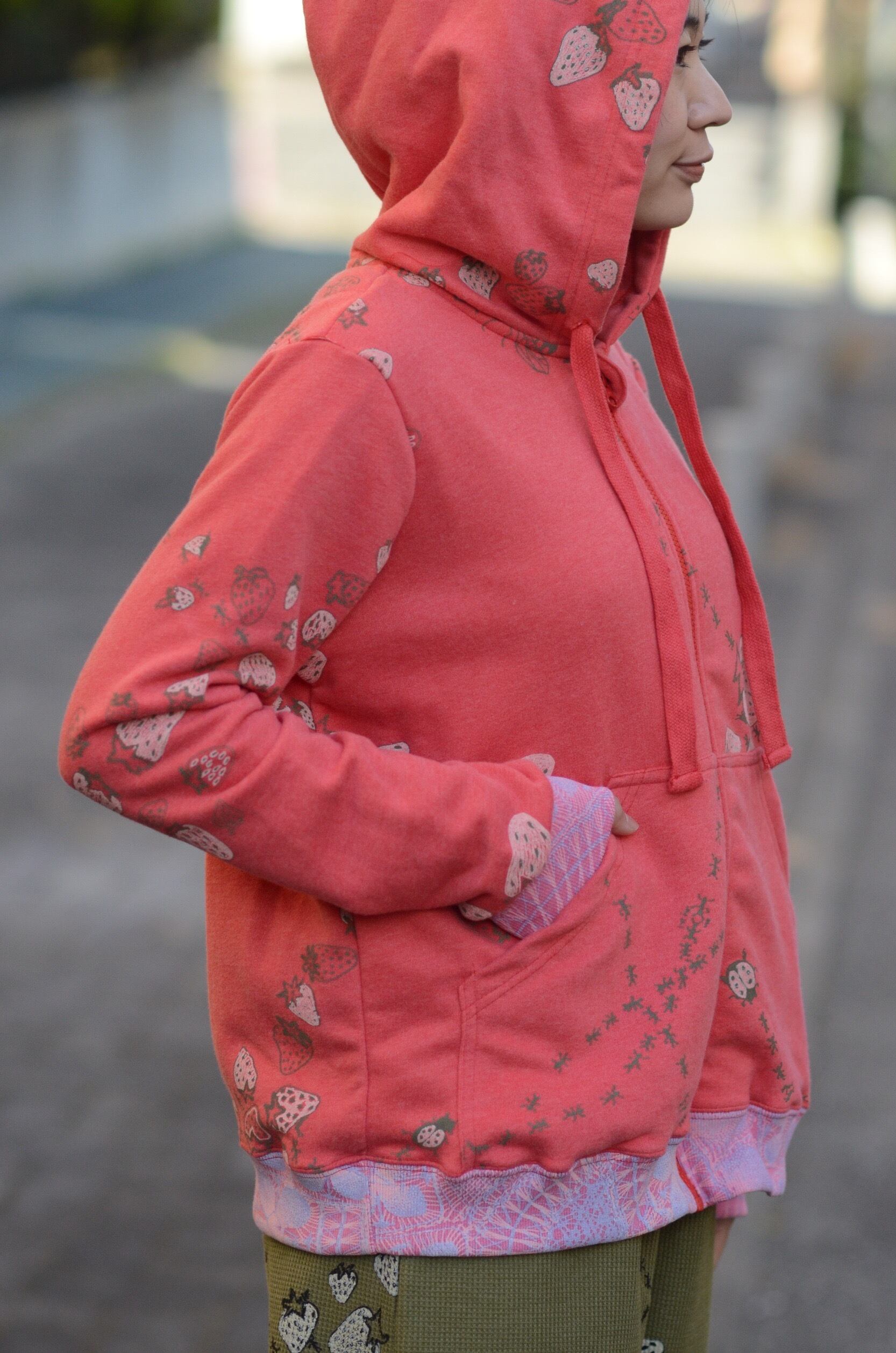同シリーズのジョギングパンツとのセットアップはもちろん、コートからフードやリブ部分をのぞかせるなど重ね着もおすすめです。