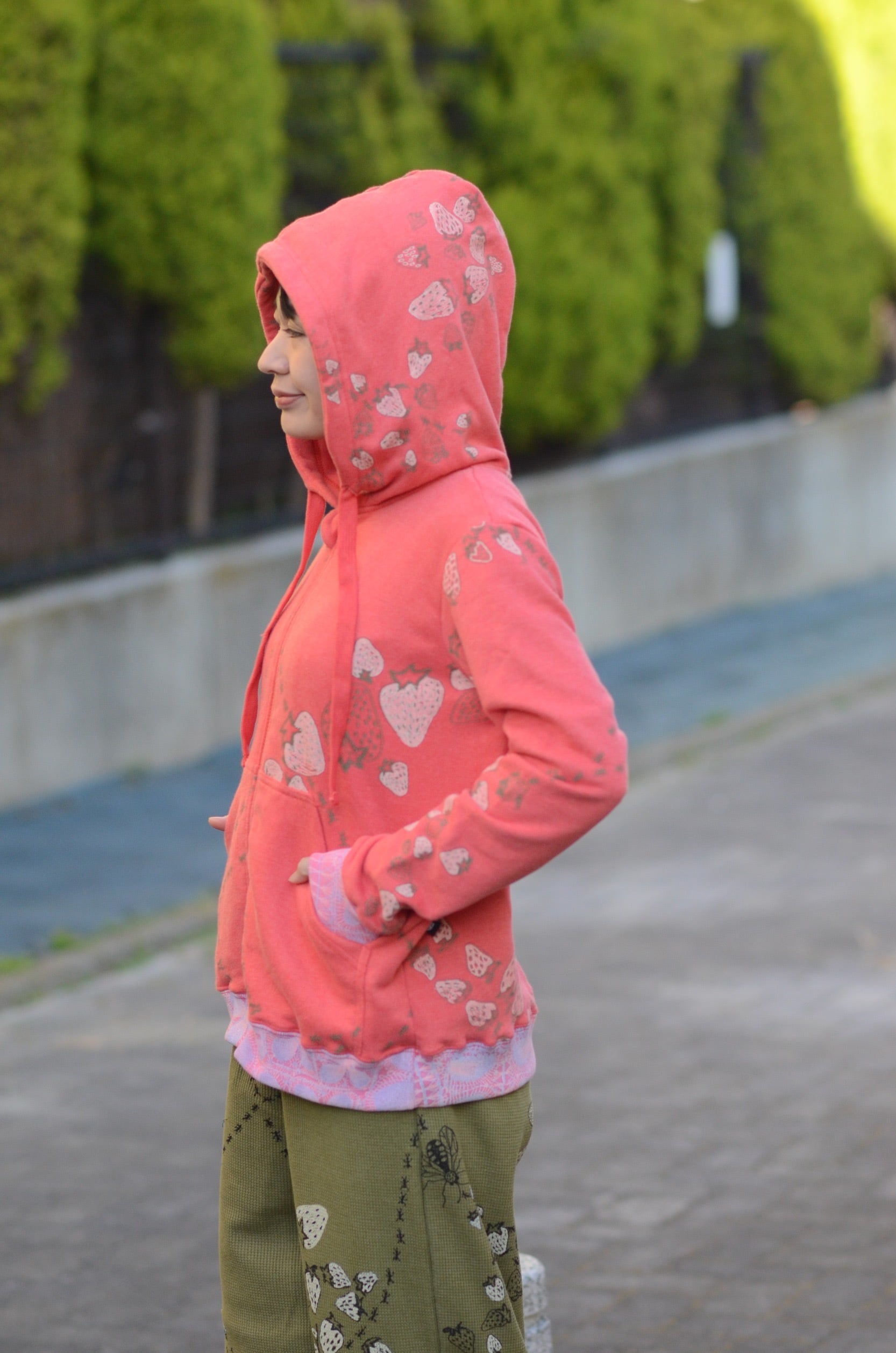 採寸:身幅約56㎝, 着丈約65㎝, 袖丈60cm, 袖口幅9.5cm,フード高さ28cm,裾幅約52cm
